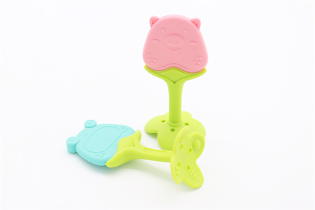 在生产过程当中,硅胶牙胶经过高温硫化成型,产过程当中所采用高拉力气象法硅胶生产制作,所以硅胶制品能够在使用过程中产生良好的拉升度,使用时不易出现破裂现象,其次采用珀金硫化剂的产品在后续使用对老化性,抗黄性,韧性度效果等都会得到良好的提升,所以使得产品的使用寿命给更加长久,在清洗方面,硅胶材质经过模具的模面效果达到-定的平滑度,能够在清洗时有效的清洗油污,杂质等,水冲洗即可,这也是硅胶牙胶的实用便捷优点之一。